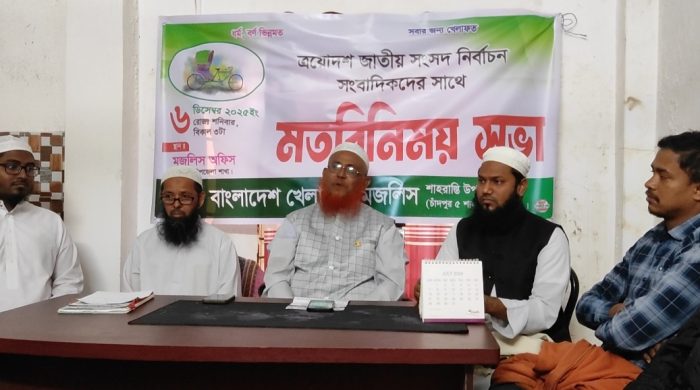 চাঁদপুরের শাহরাস্তিতে সাংবাদিকদের সাথে মতবিনিময় সভায় ন্যায়ভিত্তিক সমাজ কায়েম করে আমরা এ জাতিকে উন্নত জাতি হিসেবে গঠন করতে চাই। এমনটি বলেছেন চাঁদপুর-৫, (শাহরাস্তি-হাজিগঞ্জ) আসনের জাতীয় সংসদ নির্বাচনে বাংলাদেশ খেলাফত মজলিসের